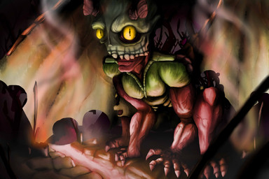It's amazing! I love it! Whatever this piece lacks, it certainly makes up for in humour. I think you did a fantastic job with this painting. It's original, the colouring is great, and the expression on his face is priceless. A tip I'd suggest for future paintings is perhaps to add a little more lights and shadows. You have a cave with flames all around and the lighting looks a little bit flat. Other than that, fantastic work. I can't wait to look at your gallery!