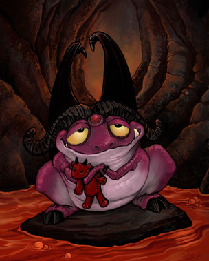 The lighting looks wonderful. I like all the reds, orange, and black in the piece. You have a nice understanding of color. Your light sources illuminate the picture nicely. The atmosphere feels like he just crawled away to his own little corner of hell to whine and think.