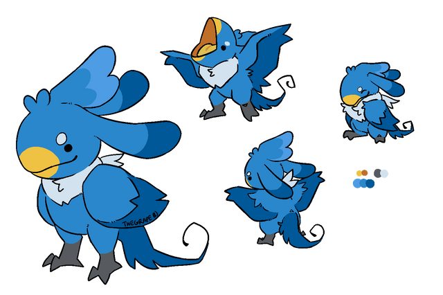Very cute chibi style baby evolution form. I like your use of yellow as a spot colour to make the eyes stand out, and the stripe pattern on the tail. I feel it's an unusual and creative design.