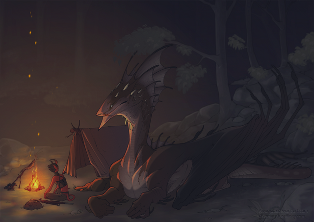 #anthro #artdigital #campfire #cave #commission #digitalart #digitalpainting #dragon #drawing #fullbody #furry #painting #sketch #art #fire