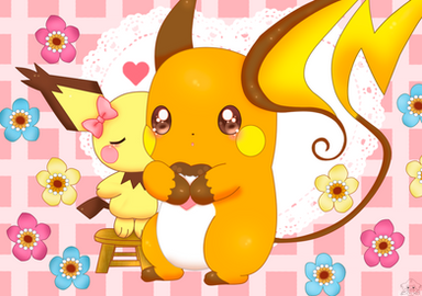 This is such a cute pic!! the drawing is perfect youve got all the colors working together this part of the evolution chain of pichu is so cute raichu and pickachu are awesome together!! GREAT WORK!!