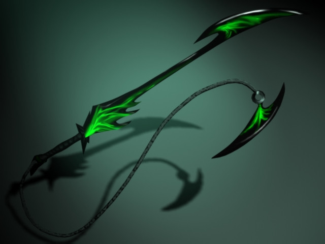 3D weapon #52. Scorpion.Scorpion is a sword-whip that uses metallic rubber cords between each section of the blades. the advantages of its special rubber is that it keeps the whip slightly stiff, therefore giving more control to the wielder while whipping, as apposed to something like chain which would make the whip far too loose and very hard to control.