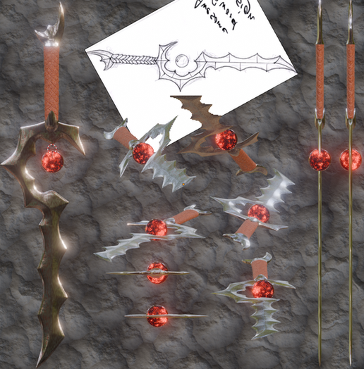 and yes, mostly all of my weapons come from one story. which ive finally started developing (hereΒ www.indiedb.com/games/regal-arβ¦ ) although this game will be the introduction to the overall story. ive actually posted quite a lot of character art. under my drawings tab in my gallery -Β malmida.deviantart.com/galleryβ¦