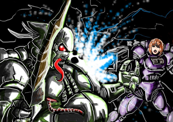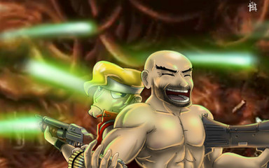 Doom 2 in multiplayer modeFor the full image of the Doom Marine Girl put IDDQD ... and go to my blog (blogger or google - malphashsite) or in Hentaicommunity
