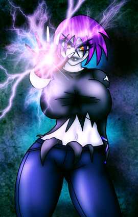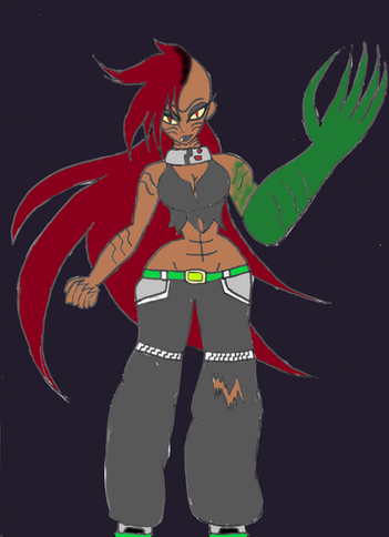 Huh, so something shredded her top, wonder if that's why she's looking so pissed right there...