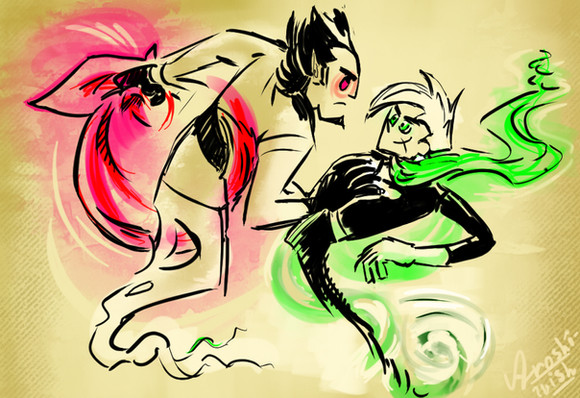 Yes. Halflings. Because 20 years or so (and 2 years or so for the other) of ghosthood is fairly new.And don't ask about the rest of Vlad's body! I mean... they're ghosts!