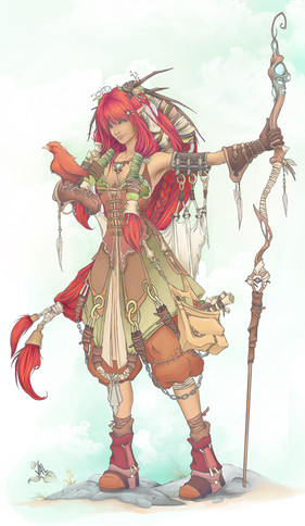ooohh, you coloured her! You fixed the staff i see, and everything looks so good.. her clothes, hair, the soft background, the staff... all looks rather spiffy