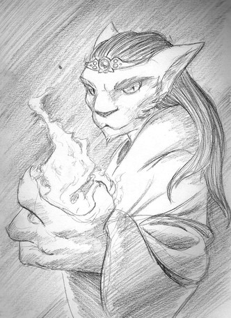 I would have added more detail to it... But i personally liked the simplicity of it..Another aspect of my story. Legends talk about Oracles that the Ancients had, who were able to look into the elements and predict the future from them. As the title sais, this one is the Fire Oracle... Oracles were regarded as the beings closest to the gods, and so were nearly worshiped by their followers.