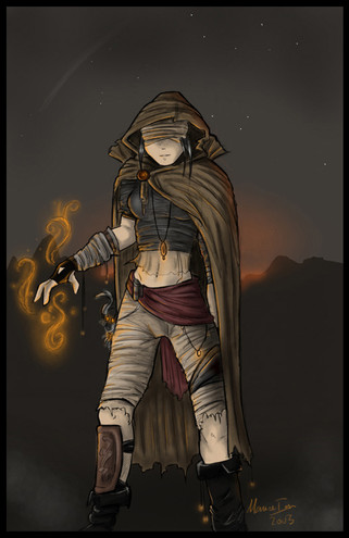 im not sure if i like the coloured linework though i think it might have been more effective if it was just plain black but having said that it does look good for the hair. i like the little puppet and the way you have done the ghostly background