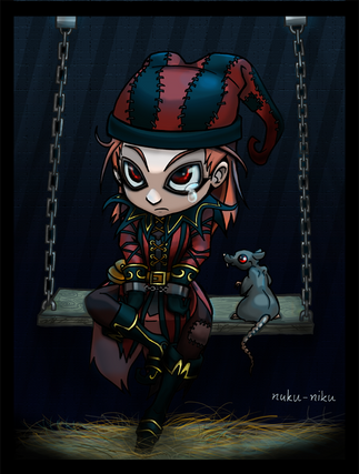 This has been sitting in my Documents for some time now... I just needed to go and add a background to it, but I had no ideas at the time. Im not sure how well this background fits it, but I like it. Yes its Jester person again. I just had to draw him again