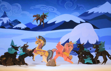 On the right we got Grampa Gruff who doesn't seem to share the griffon fledglings' enthusiasm one bit.