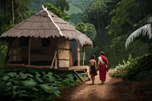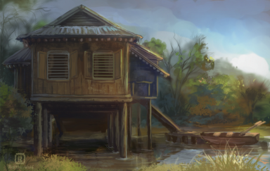 #bright #hut #huts #jungle #landscape #practice #study #tropic #malthuswolf #malthus_wolf