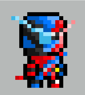 Here we go, the next Rider protag and his default form, RabbitTank Form. The steel moonsault... apparently.So this was a pain to make a sprite for, because the suit uses some various small parts and follows a strict diagonal line pattern. The silver lining is that various forms look like they'll be reusing this design in different colors!