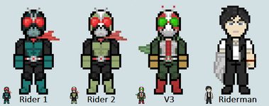 As a young man, Joji Yuki lost his parents and almost turned to suicide, when Shocker adopted him into their ranks for "a greater case." He remained with them for a number of years as a top scientist, until he discovered the truth while snooping around their database; His parents were in fact murdered by Shocker in order for them to gain his trust, as they wanted to make use of his brilliant intellect. As punishment for snooping, one of his arms was amputated, and he fought back after installing a mechanical replacement with firepower and managed to escape. Since then, he has walked the streets as a vigilante with a list of Shocker devotees, in order to slowly rid the world of their scum. He donned the name of Riderman in homage to the masked heroes taking on the larger parts of Shocker. Eventually he crossed paths with a Shiro Kazami, who he now knows as Kamen Rider V3, a currently retired hero of justice who has come to understand his loss and support his cause.