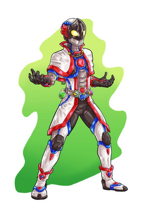 Merryyy Christmas! This year I did something different for the December image, with the loose theme of "Christmas miracle" - which was specifically, if you would have a female supporting character become a Rider, who would it be? The winner, which I definitely should've seen coming, was Misora from Build. I would've classified her as "Not the fighting type" since I don't think EVERY supporting character is fit for the role, but Rider Love podcast does make a good point on having Vernage be the reason for why Misora would become a Rider. I ran with that idea here. This is a real Den-O situation where Vernage is the one in control.So here we have Kamen Rider Verna, copying the naming scheme with Evolt/Evol. Being that Vernage is an alien force, I used Evol's design as the base, but made changes as I went along. This uses the Build Driver with the Rider Evolbottle and CD Fullbottle (because hey, Misora became that Smash), so the base suit is a Build-style suit. There's also a bit of the Rabbit chest design here because I also wanted a soft reference to Misora's Mii-tan persona, which has rabbit ears as part of the costume, and she also has that rabbit plushie. There's also the cloak bit which is from Cross-ZBuild Form. The visor is made to look like a disc with its reflective colorful design, and there's hints of Misora's bracelet all over.