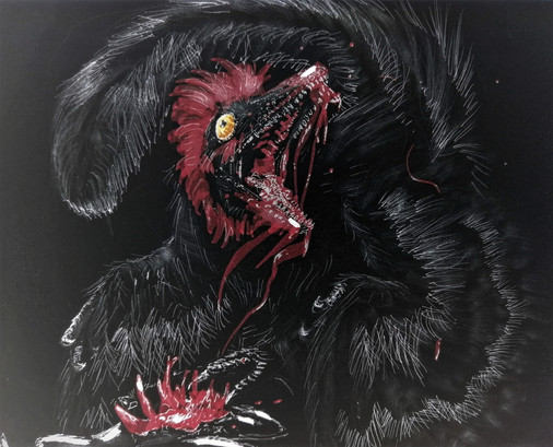 this is really awesome. I happen to love velociraptors and because of that, i'm exceptionally picky. I draw my own so it has to be good. I should actually draw a legit raptor though with some feathers. thanks for the awesome painting and the inspiration.