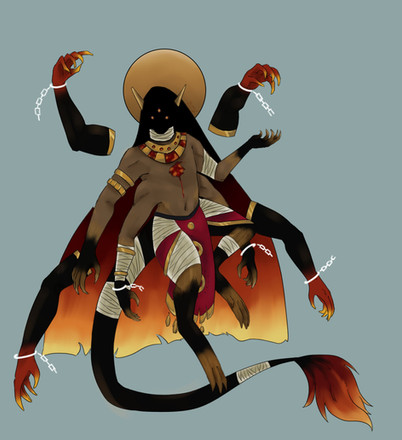 Inmiac have a huge hatred for humans (for the desire he gained because of them and caused his curse) and only uses them for breeding tools in a sadistic way. He can't feel love or happiness, only hatred, the lust of sex, aggression or when he want's to spill blood. Inmiac is not someone you should trust easily due too his narcissistic personality, either he will use you, or kill you, there is no in between.