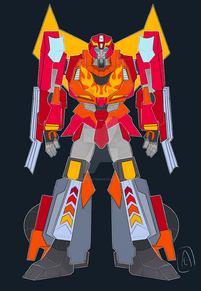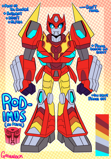 Finally work on my own AU Design for Transformers Rescue Bots Academy I had in my head for months - Even if it's a quick mirror ref! Meet Rodimus ( no prime, just a name change from Hot Rod ) Headcanon to be Hotshot Dad ( or parental figure if preferred that ). Also I based him off of Idw Rodimus more than Cyberverse because I forgot.So in Short:
