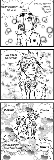 The Guardians met Zero, before they were fugitives, on there way back from protecting a princess and prince up in the mountains. They got dragged into protecting his very rare pet, Zipper from the "Bandit Trio: The Night Brothers"