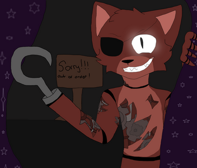 You did a nice job setting aside empty space away from Foxy, so he wouldn't be all up in the viewer's face. It seems you handled positioning a focal point very nicely, as my eyes nearly immediately were drawn to Foxy's face (especially the center of it). This means you also succeeded in creating emphasis on Foxy being the main interest of the image. You also have a nice pattern with the white stars, but it feels like you should've had a few more of them on the left.
