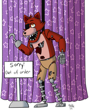 Analyze: You managed to successfully form a proper and professional-looking outline for Foxy with the use of lines and shapes (as well as forming his holes to show how he's rather worn out; you even managed to successfully display his interior's hidden endoskeleton). The use of colors was a splendid idea, as it provides more appeal to the eyes, and you also managed to successfully mimic the color scheme of Foxy and his stage's curtains.