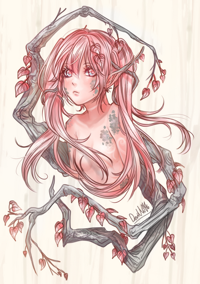 #anime #bust #flowers #horns #oc #pastel #pink #roses #animegirl #animestyle #originalcharacter #treehorns