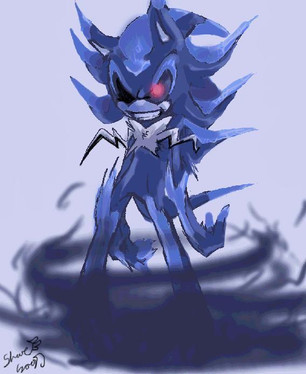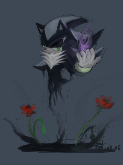 run away shadow! phyco Mephiles! its drawn awesome who cares about the nose and mouth personaly i think that makes him look silly without them
