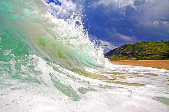 This is a very, very, very crisp shot, and I can practically see the drops of water splashes high up in the sky. The tunnel created in the wave is also very pretty.