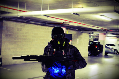 Nice outfit. If I might make a recommendation, try going with a firefighter SCBA mask. That seems to be closer to what is in the movie.