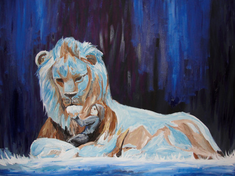 The first painting I've done in over two years. I've decided to try and paint scenes from books, and I started out with painting the meeting between Bastian and Grograman/GraΓ³gramΓ‘n from the amazing book "The Never-Ending Story" by Michael Ende. I'd like to do more scenes from this particular book, since it's so rich and varied, but I will have to see how and if I can do that in a good way.This is also the first time I've tried acrylics out. It was different from oil and I'm not sure what I like the best, but this is definitley cheaper.