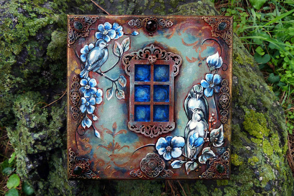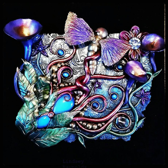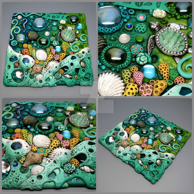This is a tile I created with polymer clay, glass gems, glass cabochons, stones and tiny bits of driftwood. It will be published in a book of polymer clay tutorials that is due out soon. I'm so excited! Learn more about it hereΒ www.thepolymerarts.com/index.pβ¦I own the copyright to this image and it may not be used in any way, in part or in whole, without written permission from me.