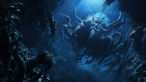 For this week's photo manipulation speed art, I created a deep sea simulation design, a sea monster facing a human diver, and some fantasy visual effects.Watch how to make this in Photoshop on YouTube: youtu.be/CSPYQiYAE_4