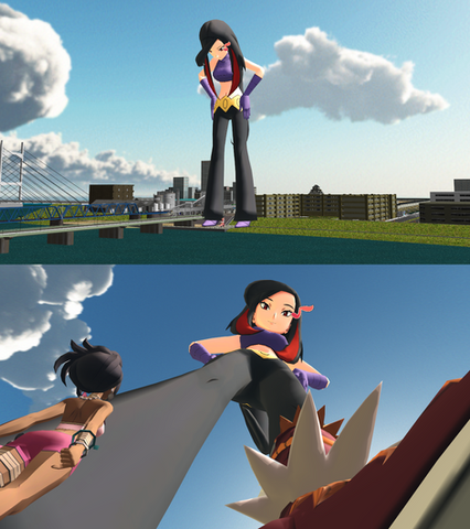 Perrin's parents taught her how her ancestors used to survive in the wild. She had a good enough survival instinct to know the sudden super massive mass outbreak of Giantess' would be more of a danger to her on the ground than at the top of a skyscraper. So, she decided to take the opportunity to capture unique photos like the world had never seen.Rosa on the other hand. Had no idea what was happening. She had taken a nap on the ground and woke up in a completely different looking place. The air was thin, she could see space and everything looked weird, kinda like someone rebuilt the city but really small. What confused her even more was the weird looking thing looming above her, it looked like a person, but it was wayy too big and round.