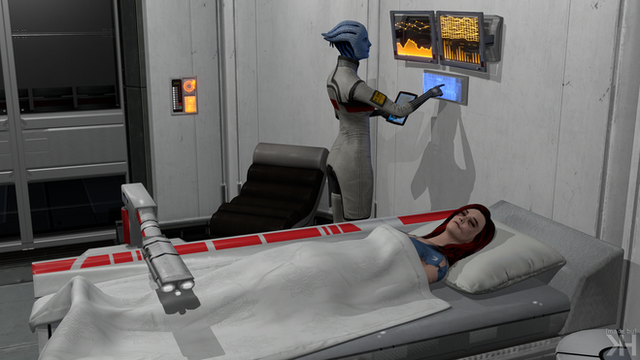 Been sitting on this render for about a month. I modded the Shep I was using at the time for post war wounds but just as I finished the render The-JoeBlack gave me my awesome Custom Shep so I didn't want to post this. I have been talked into it.Tumblr user empressmiri [link] kindlly donated the Lazarus project screen shots I used for the monitors.