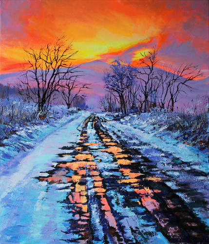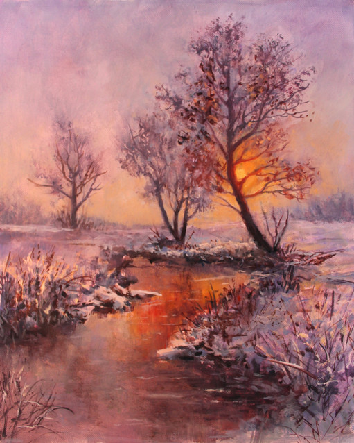 #landscape #oiloncanvas #oilpainting #painting #sunset #traditionalart #winter