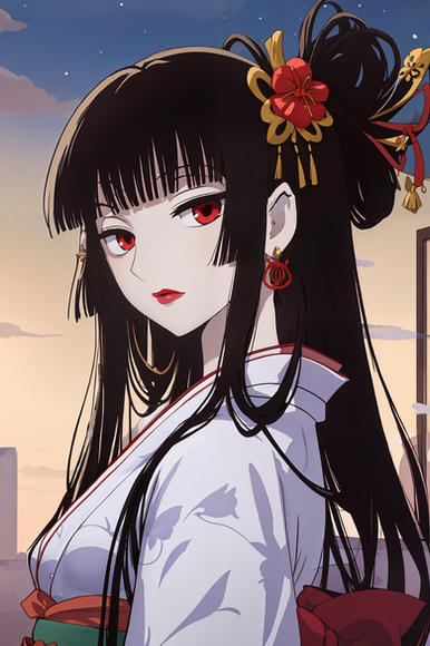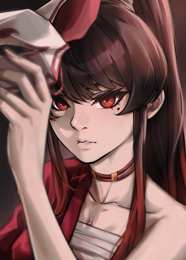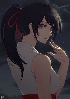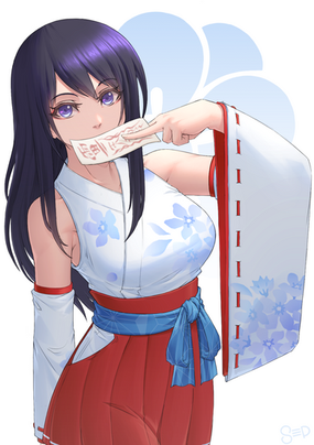 #anime #artwork #brush #digital #girl #illustration #kimono #manga #miko #painting #blakhair #detachedsleeves #sthreep #shrinemaiden