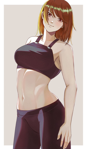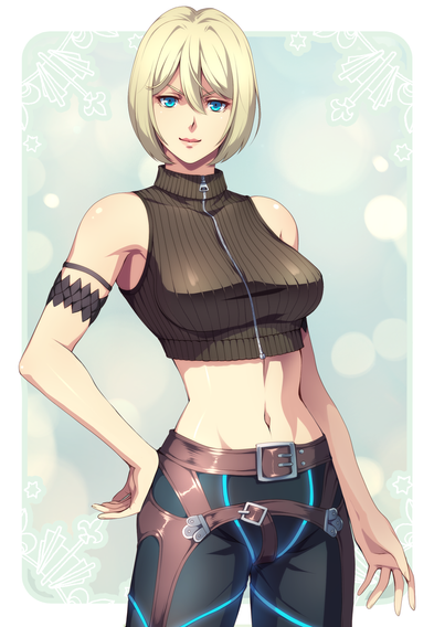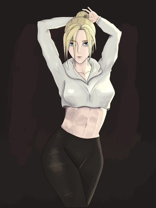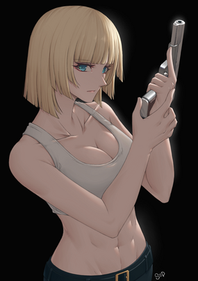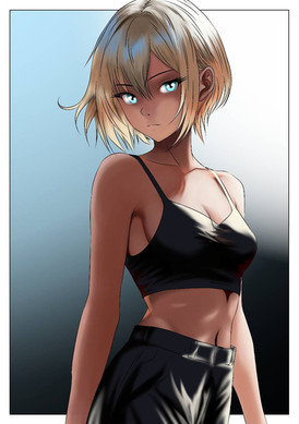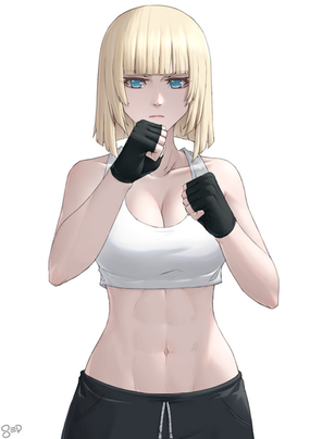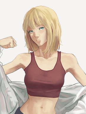 #anime #blond #blueeyes #drawing #girl #manga #portrait #shorthair #woman #bobcut #sportsbra