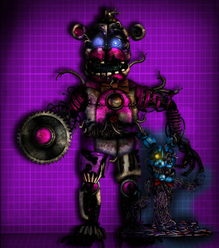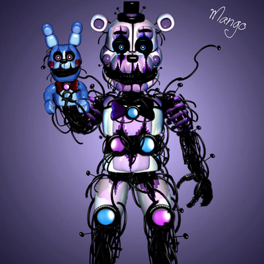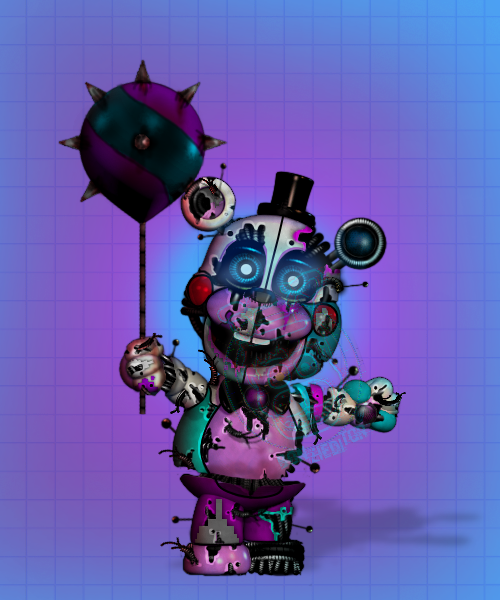 While I did make this edit a while ago if I remember correctly I used Funtime Freddy's PAS render for the suit parts and Bon Bon, Molten Freddy for the endo, and Scrap Baby for the eyes and pins.