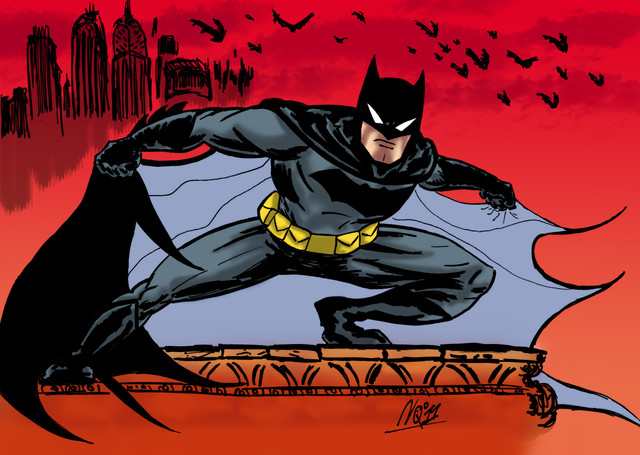 Frank Miller's Batman on the rooftop.My friend drew an awesome picture [link] , and I liked it! I want to take a bash at the configuration. Check the picture and the artist out.