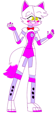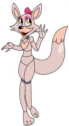 Información: FunTime Foxy Jr es una de los personajes femeninos de la serie FNAM Sister Location, siendo Crush de FunTime Freddy, sus hermanas son Mangline, Lolbit, Tangle y FunTime Frexy ya que todas eran las hijas de la FunTime Foxy antigua que murió y estuvo dentro de Endo F Angel para crear a Molten Freddy. FunTime Foxy Jr. tiene un aspecto muy llamativo la cual le da la habilidad de atraer a un furro por su belleza. FunTime Foxy Jr es la única zorra del Grupo Hermanas Fox que es prostituta ya que se enamora de los demás FunTimes ya sean femeninos o masculinos. Esto es algo que la hace especial ante FunTime Freddy.