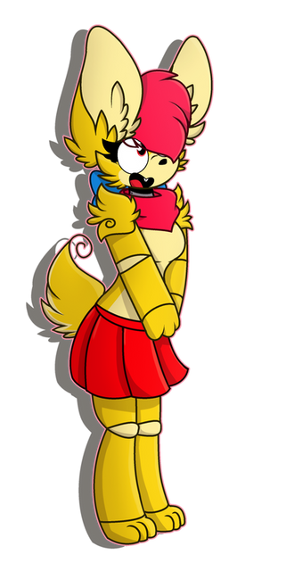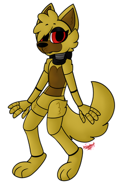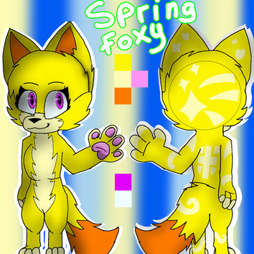 SpringyFox en versión de mi amiga DarceyFoxy. Como podrán ver es una versión Chibi de la hermana de Funtime SpringTrap, sin su vestimenta se ve aún más hermosa que con su vestimenta. Se iba a usar la versión actualizada pero.... Se decidió por usar mejor la versión antigüa del personaje.