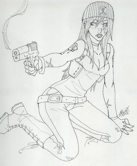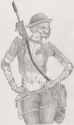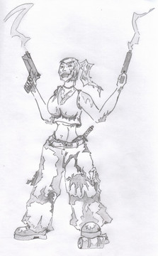 The "Bad Karma" side of my Infamous OC. By choosing the evil options she gets more tattoos and adds the scythe head to her staff so she can energy-reap people. Good Karma will be coming up soon and a cute comic Zombie Hunter.Apparently being sick unblocks my creative juices. However my nose is not so lucky... :C