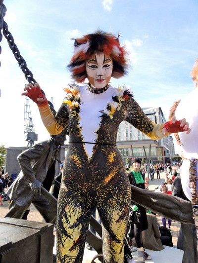 Myself as German Rumpelteazer during Race For Life, taken by 'Amanika' in a Subway after the race. Costume construction (unitard and song costume) by Belle, warmers by nanayena, wig by Roxanne. All else painted and fluffed by me.Related content