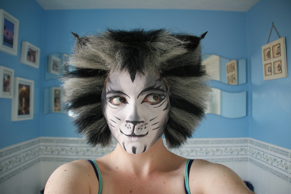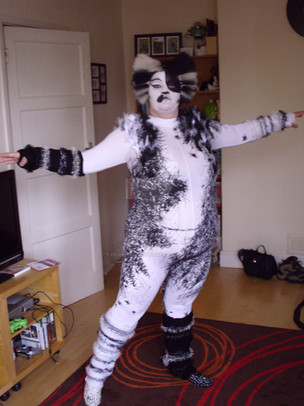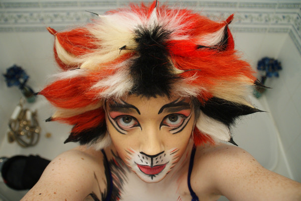 A German Rumpelteazer 'chorus' costume. Warmers by nanayena (yarndog), wig by Roxanne, custom unitard and leotard construction by Belle, and everything else made, painted and fluffed by me.Related content