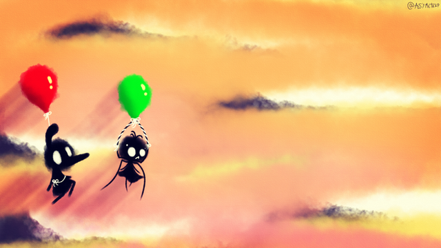 #flying #goblin #sky #watercolor #balloons #clouds