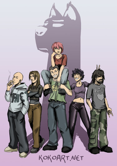 I'm in a terribly dry conference call, so I'm poking around your gallery... this is excellent. You captured the essence of each character, well done. Rob is one of the few people who I consider a "virtual friend", and knowing that last fall was not fun for him, this does my heart well. Thumbs up to you, young lady.
