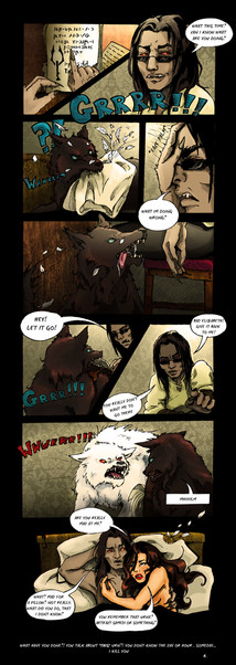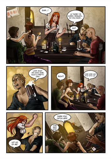 Ooh, the first and second panels are pure awesomeness. Especially the lighting in the first one and the faces in the second one. Oh, and Deliah's hair is pure win. I really feel sorry for Niko, though - having that mental image stuck in his head must be, well... Far from awesome.