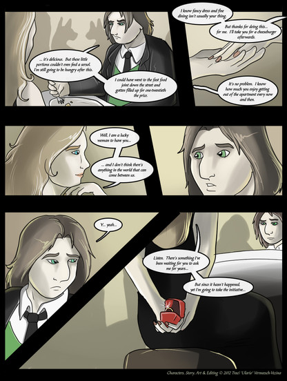 Can't believe I missed these. :3 I was confused why a pretty little comic was in my watchers folder and it was page 4! I really love the facial structure going on, specially in the first pannel!