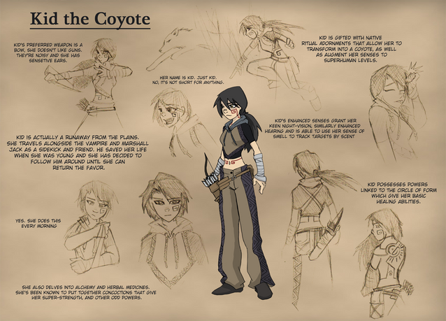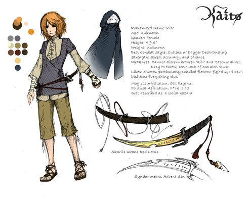 Kit Bates, my SDL fighter, duelist, OCBC character and all around git. She belongs in the Thief's Honour storyline, along with Kelsey, Dacia, Netta, and the Cat as one of the main players. As i intend to use her more frequently, i figured one of my legendary epic-reference-sheets-of-the-apocalypse was timely. She got me started and wouldn't let me stop.