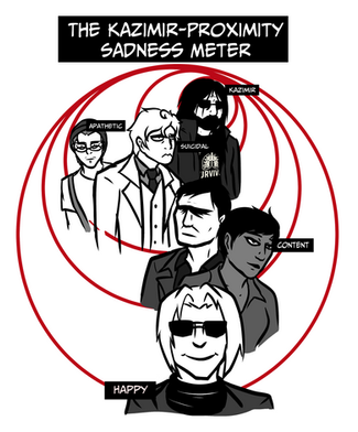 Leaping on the bandwagon begun by the ingenious and sexamitous *TheCrowchan .There's the occasional upbeat song in there, but it's mostly drowned out by the SHEER ANGST. Niko's tendency to gravitate towards 3am misery ballads isn't helped much by the vast quantities of alcohol.